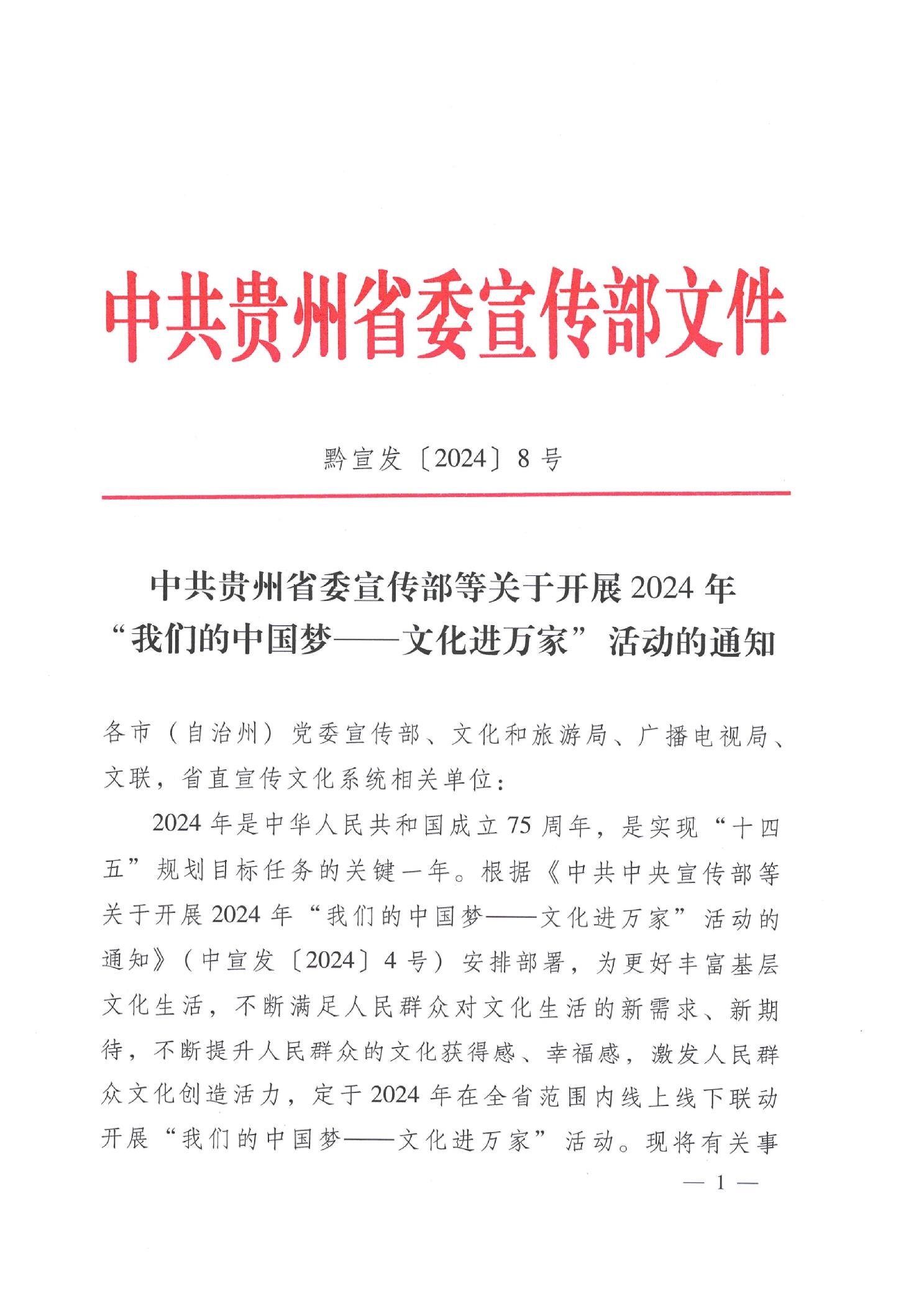 中共贵州省委宣传部等关于开展2024年“我们的中国梦——文化进万家”活动的通知